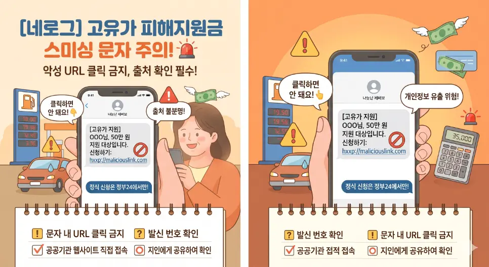 스미싱 주의! 정부는 URL 문자를 보내지 않습니다