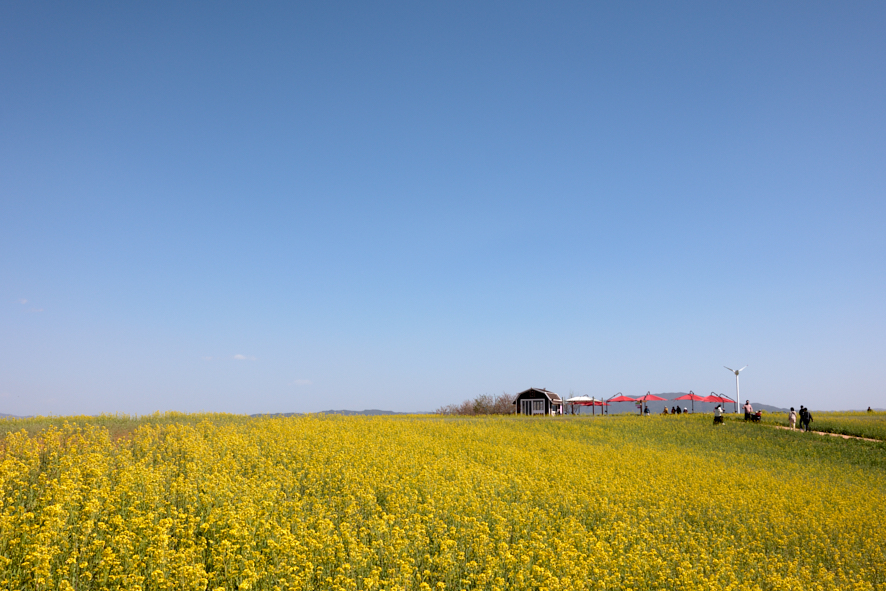 봄날, 이곳은 채 떨어지지 않은 벚꽃과 넓게 펼쳐진 호밀과 청보리, 유채밭이 펼쳐져 있다. 이리 넓은 풀밭 언덕을 보기 쉽지 않으니, 방문객들은 멋진 풍경과 동행과의 추억을 기리기 위해서 스마트폰으로 연신 사진을 찍는다. 호밀과 유채밭과 그 사이로 길게 뻗은 ‘블루애로우 가로수길’은 시원하게 트인 하늘을 배경으로 ‘인생샷’을 남길 수 있다.