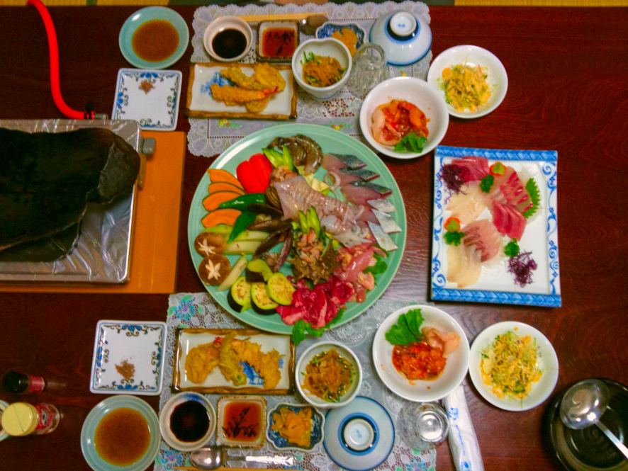 숙소에 도착한 후 빠르게 샤워를 마치고 호텔 건너편 만송각万松閣으로 이동했다. 이시야끼를 예약한 식당이다. 이시야끼는 생선과 조개류와 야채를 돌 위에 구워서 소스에 찍어 먹는 돌 구이 요리이다. 이시야끼의 재료는 계절에 따라서 주요 재료가 바뀐다고 한다. 계절마다 다른 맛을 느낄 수 있을 것 같다.