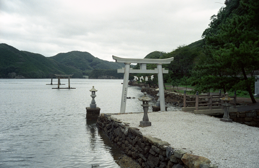 와타즈미 신사는 히코호호데미노미코토와 토요타마히메노미코토를 기리는 해궁으로 바닷신 신사 중에서 가장 유서깊은 신사로 예로부터 용궁전설이 전해집니다. 본전정면의 5개의 문 중 2개는 바다 속에 세워져 있어 밀물과 썰물에 따라 그 모습이 변하여 먼 옛날 신화시대를 연상할 수 있는 신비로운 풍경이 펼쳐집니다.
