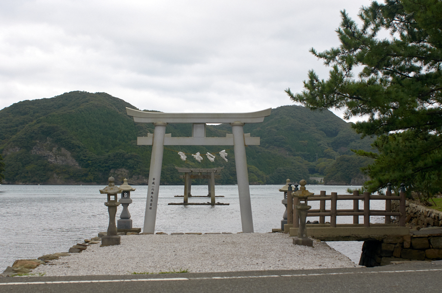 바다 위에 문(도리이(鳥居 とりい))이 있는 와타즈미 신사에 도착했다. 역시 사람은 아무도 ^^;