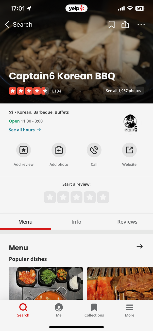 시간은 1시간 30분. Chef BBQ Special로 주문하면, Beef Tomahawk Kalbi와 Ribeye Steak는 추가로 1번(4명~6명은 2번) 주문할 수 있다. 주문할 때 자세히 설명해 준다. 내가 고기를 많이 선호하지 않아서 부위 이름을 모르는데, 주문할 때 아마 생고기(양념 안 된) 뭔갈 시켰었다.