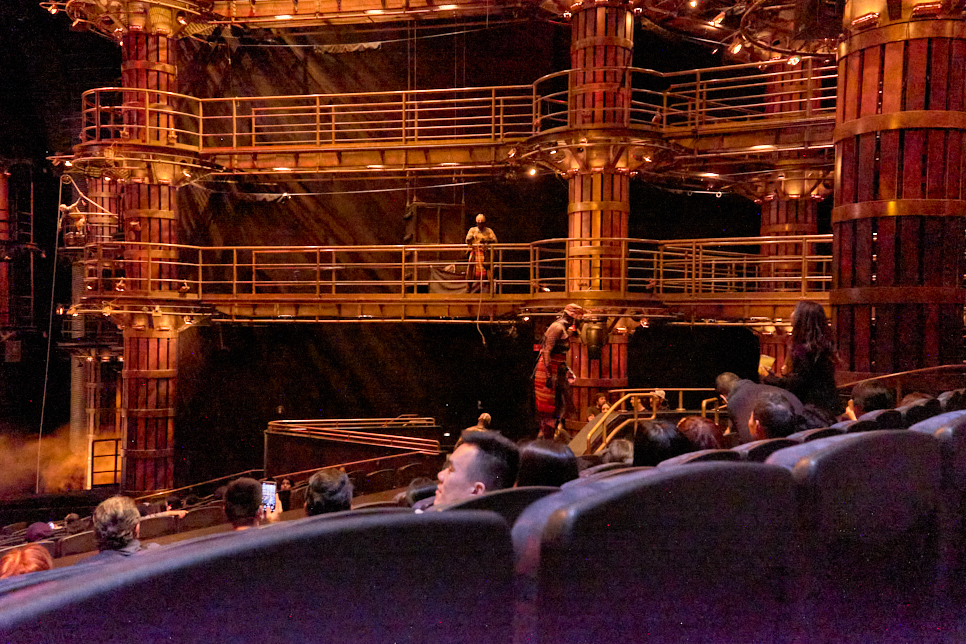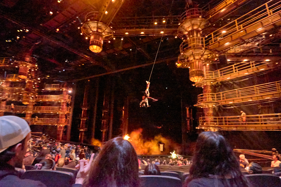 쇼를 시작하기 전 사람들이 입장하는 순간에도 몇몇 연기자들은 밧줄을 타고 날아다니고, 볼거리를 선사해 준다. 공연이 진행 중일 때를 제외하고는 사진 찍기가 가능하다고 한다.