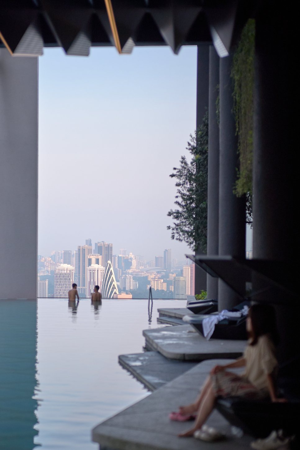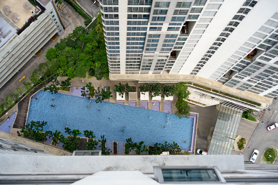 말레이시아의 레지던스나 호텔에 야외 수영장이 필수인가 보다. 유튜브에서 본 곳도, 우리가 묵었던 곳도 옥상에 인피니티 풀Infinity Pool이 있었다. 수영장엘 가니 아이와 함께 온 한국인 가족이 많았다. 이상하리만큼 공항을 제외하고는 마주치지 못했는데 숙소 내 수영장에 모두 모여있었나 보다. 딸아이가 노는 사진을 찍기 위해서 따라가 본 빌딩 숲 사이 인피니티 풀이 인상적이었다. 수영을 좋아하는 딸아이는 도착 첫날을 제외하고는 돌아오는 날 오전까지 매일 수영했다.