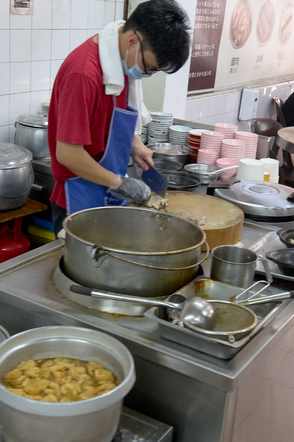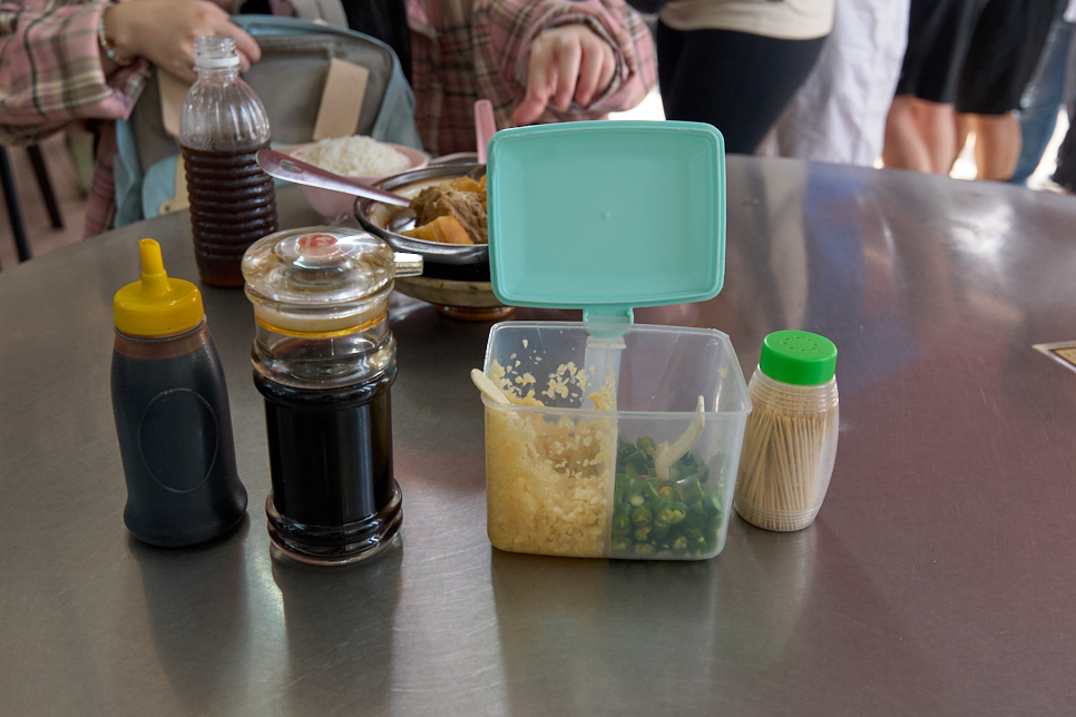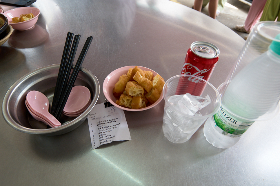 입구 쪽 테이블에 자리 잡은 우리는 바쿠테와 마른 바쿠테, 가지볶음(?), 밥과 꽈배기, 음료를 주문했다. 꽈배기의 경우는 우리 테이블에 함께 앉은 중국 여행객의 추천에 의해서 시켰다. 바쿠테 국물에 찍어 먹는다고 했다. 생각만 해도 느끼했지만, 이곳의 맛이라니 주문해 봤다. 직원이 불친절하다는 블로그의 글이 있었지만, 메뉴를 하나하나 챙기거나 웃으며 식기를 씻는 시범을 보여주시는 등 친절하게 맞이해줬다.
