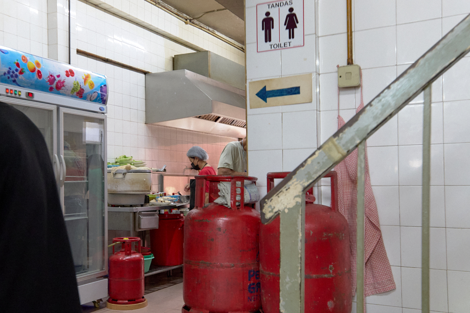 이곳에는 숨겨진(?) 공간을 볼 수 있다. 화장실을 가기 위해서는 가게의 안쪽으로 들어가야 한다. 카운터를 지나면 진짜 주방에 들어가게 된다. 조리하는 주방으로 들어가는 것은 색다른 경험이었다. 넓지 않은 주방으로 들어서면 손님에게 무심한 주방 직원이 쉴 새 없이 요리하고 있다. 이 주방에 들어가면 주방 한쪽에 화장실이 있다.