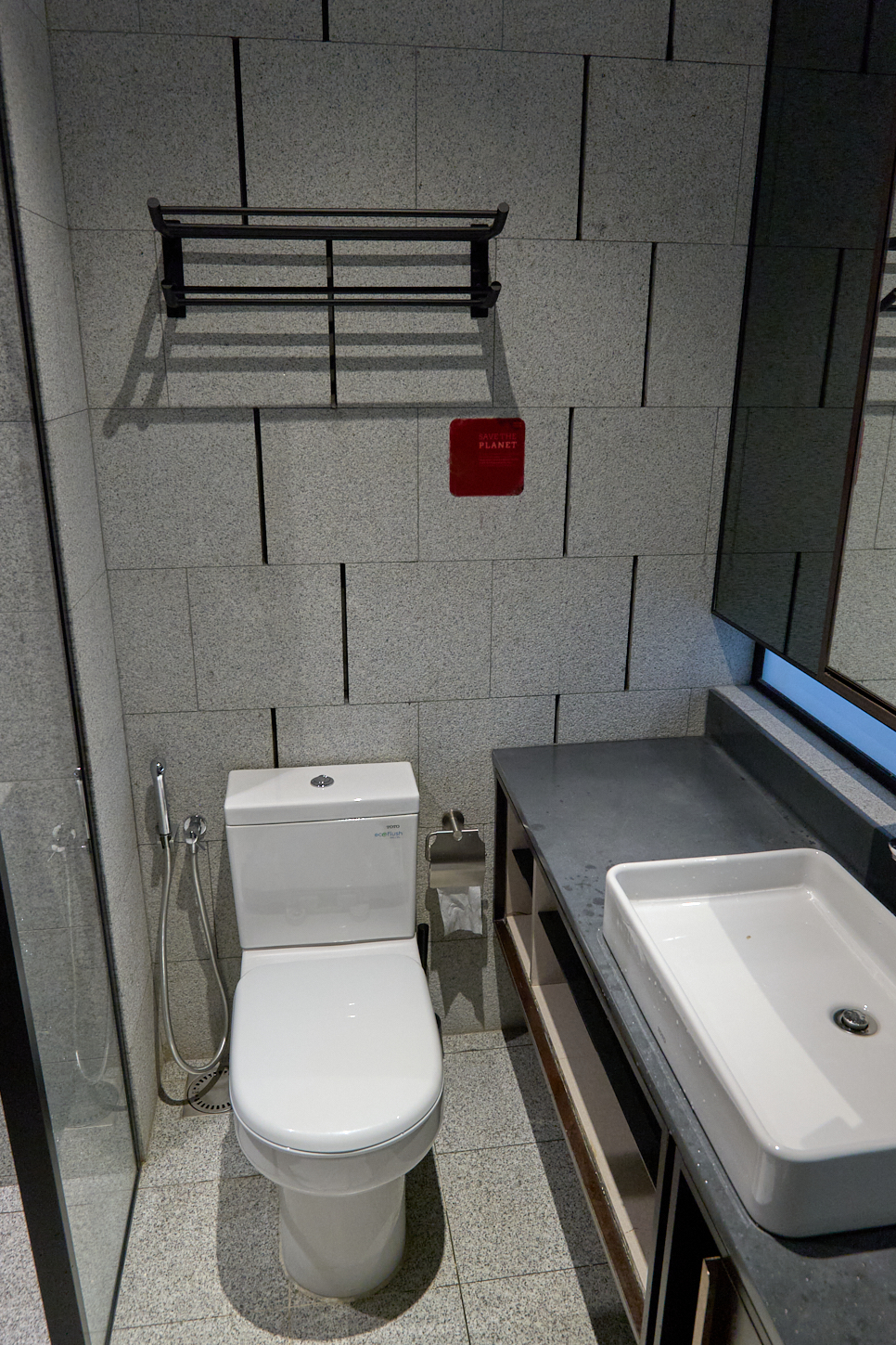 로비는 긴 구조이고 중간에 리셉션이 있다. 체크인과 체크아웃, 그랩 탑승을 위해 기다리는 사람들로 북적인다. 팝업 스토어 형태의 커피숍과 편의점 역시 로비에 있다. 4대의 엘리베이터 간에 특별한 규칙이 없어 보인다. 크지도 않은 엘리베이터는 몰려다녀 이용이 살짝 걱정되기까지 했다.