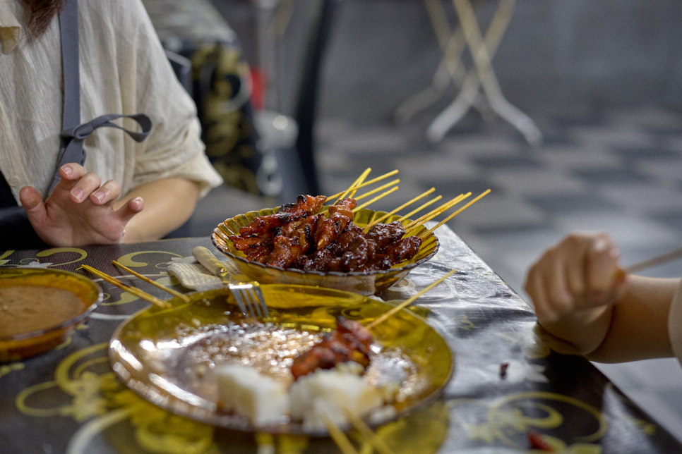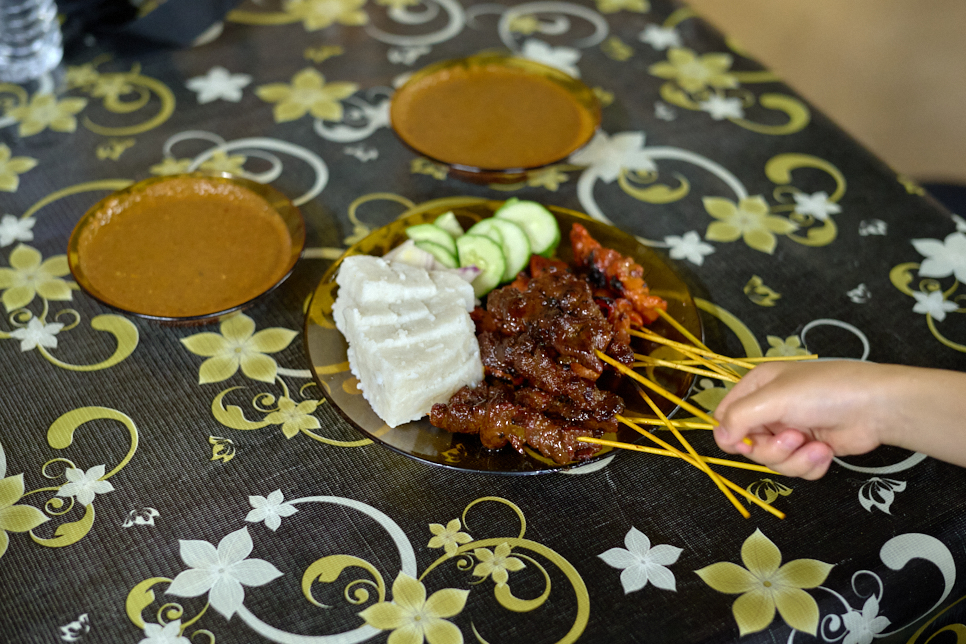 Satay Zainah Ismail는 현지인이 많이 찾는 사태 맛집이라 한다. 대문 없는 마당에 지붕만 올린 허름한 가게의 모양을 보니 오래된 ‘찐 맛집’이라 생각했다. 닭고기 5개, 소고기 5개와 찐쌀 케이크 2개를 주문하고 가게를 둘러봤다.