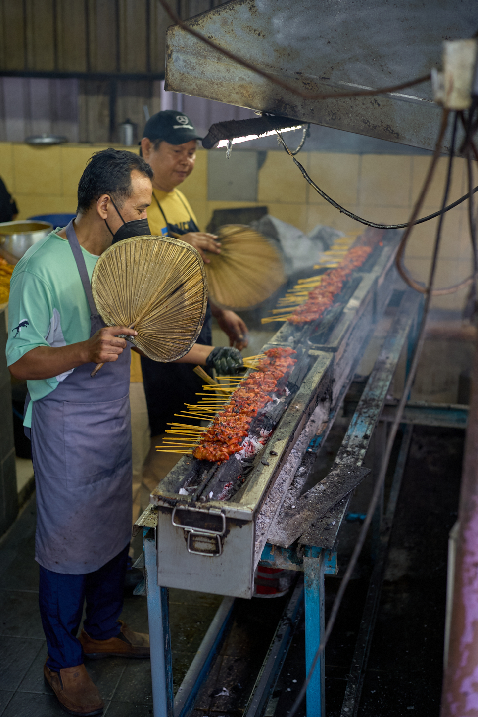 입구 옆 큰 선풍기 앞에 긴 숯불 화로에 빼곡히 올린 사태를, 부채질하며 굽는 분이 보인다. 그 안쪽으로는 포장, 계산, 채소 준비를 하는 곳이 보인다. 구어진 사태를 종이 봉투에 넣고, 그 봉투를 커다란 비닐 봉투에 넣는 작업으로 모두 바쁘게 움직이고 있다.