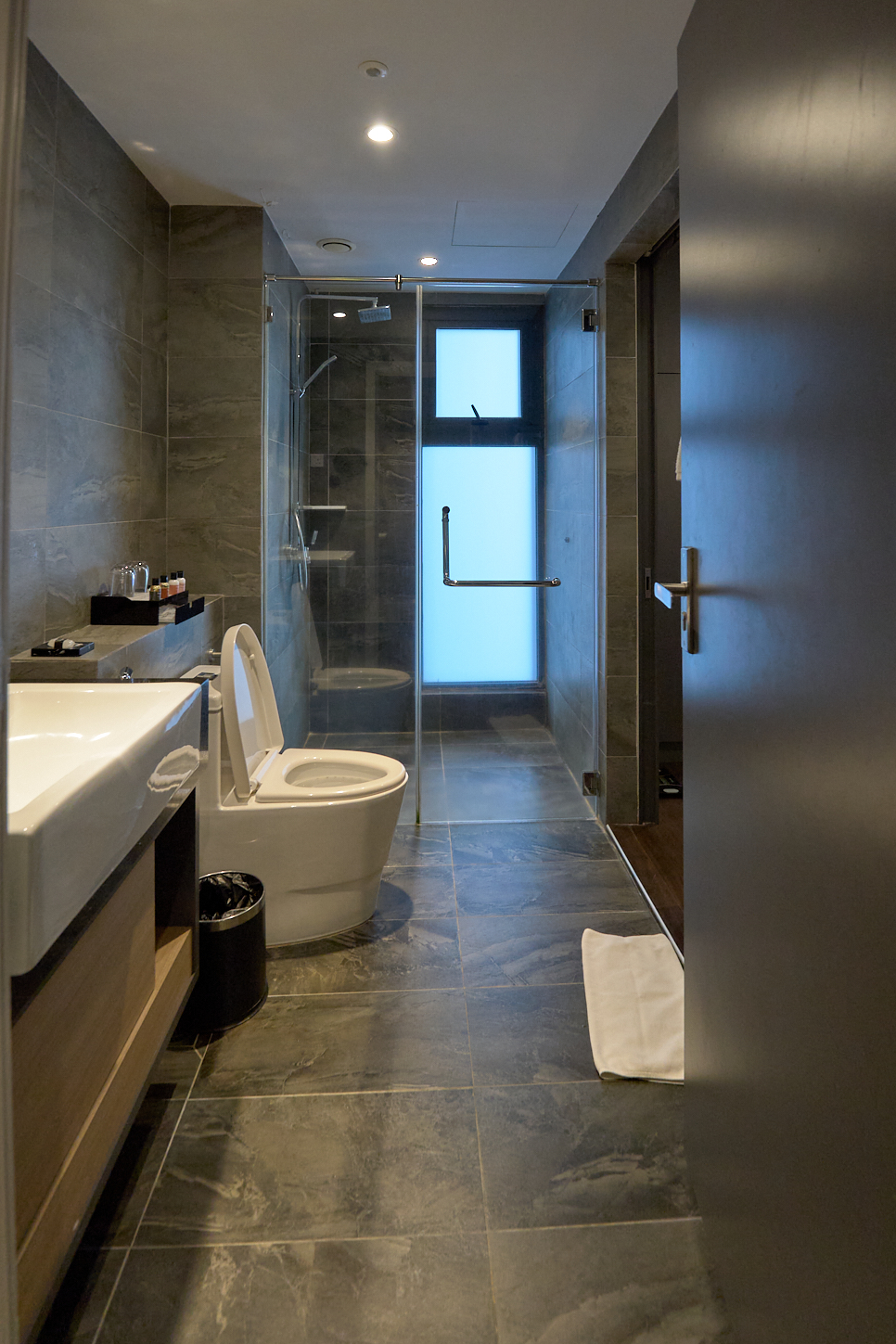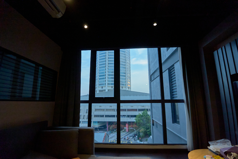 거실 전면 창 뷰는 콤타 타워인 객실에 묵었다. 넓은 거실과 침실은 분리, TV와 에어컨이 각각 설치돼 있었다. 싱크대와 전자레인지와 전기포트, 접시, 포크 등 있어서 간단한 음식은 가져와서 먹을 수 있었다.