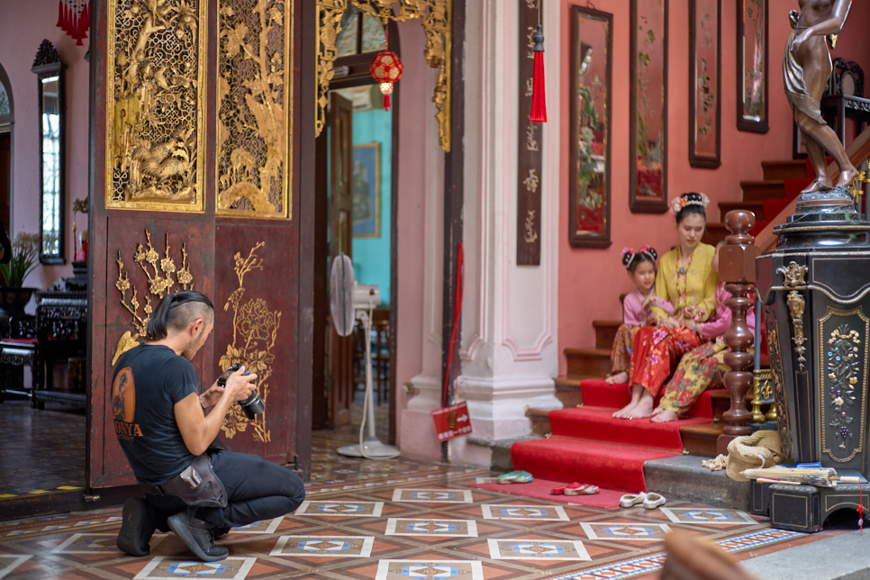 관람하다 보니 유독 중국식 의상을 입은 사람이 많이 보였다. 페라나칸 의상인 듯하다. 나는 찾지 못했지만 의상을 대여하는 곳이 있는 듯하다. 오래되고 세련된 곳이 많아서인지, 페라나칸 의상을 입고 서로 사진을 찍거나 유니폼을 입은 사진작가가 프로필 촬영을 하는 것도 자주 보인다.