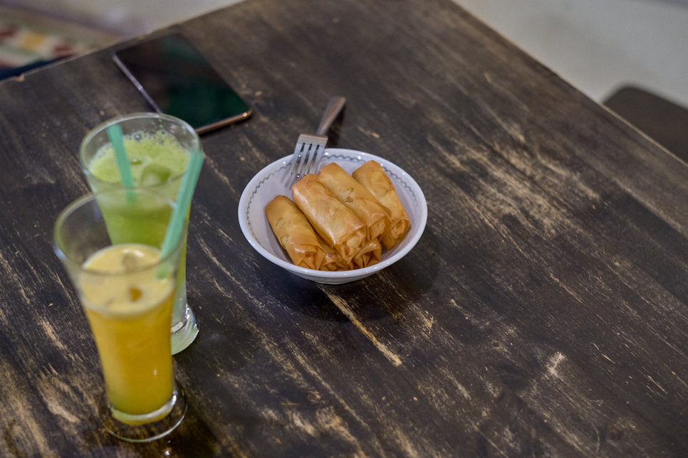 우선 주문한 음료와 스프링롤이 나왔다. 스프링롤은 익숙한 맛이었고 막 튀겨서 나와 따뜻하고 바삭했다. 아쌈 락사에 스프링롤을 찍어 먹어도 맛있다고 알려주셨다. 메인 음식 아쌈락사가 나왔다. 예상대로 뭔가 복잡한 모양이다. 맛은 시큼하면서 단맛도 났지만 비리지는 않았다. 등푸른생선의 맛이 생각보다 강하지 않았다. 나쁘지는 않지만 엄청난 맛이라고 느껴지지는 않는다. 내겐 익숙하지 않은 맛 인가 보다. 아내와 아이의 입맛에도 맞지 않은 모양이다. 몇 번 더 먹어봐야 참맛을 알 수 있다고 판단한 우리는, 기회가 되면 다른 곳에서라도 한 번 더 먹어보기로 했다.