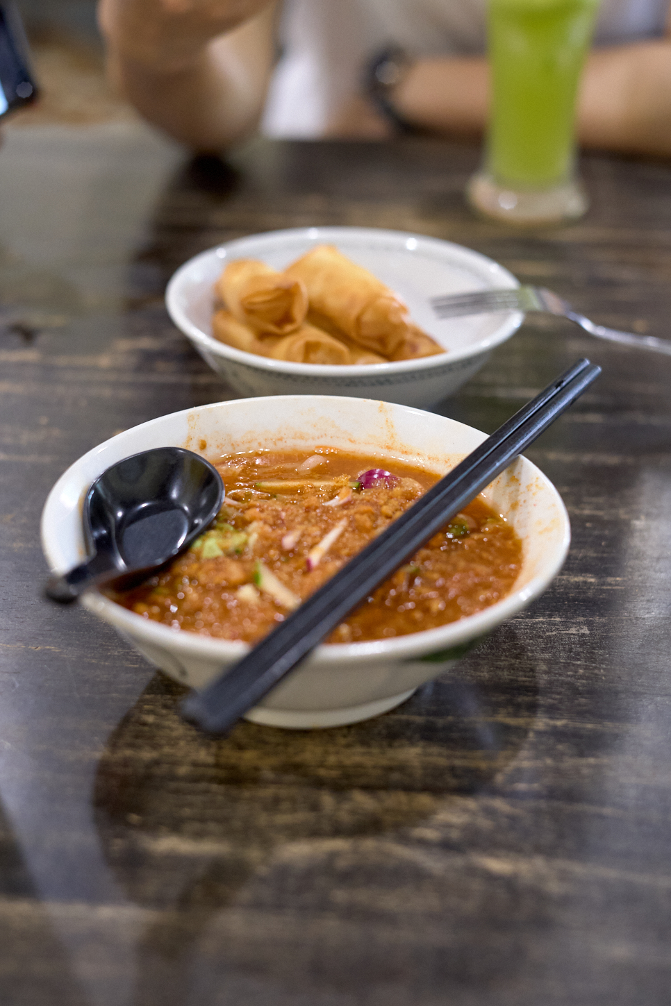 다음날, 가족과 아침으로 가볍게 먹기 위해서 방문했다. 점심을 생각해 둔 곳이 있어서 일단 아쌈 락사의 맛만 보기 위해 들린 것이다. 나는 음식 맛의 거의 반 정도는 보이는 맛이라고 생각한다. 사진이나 유튜브로 본 아쌈 락사의 빨간 국물이(매운 것을 좋아하지 않는다) 맘에 들지 않았고, 형체를 알아볼 수 없는 건더기 가득한 국물도 맛있어 보이지는 않았다. 그래도 현지 유명한 음식은 한 번씩 먹어봐야 한다고 생각하기에 방문했다. 미슐랭 가이드에 선정된 집이 아니던가!