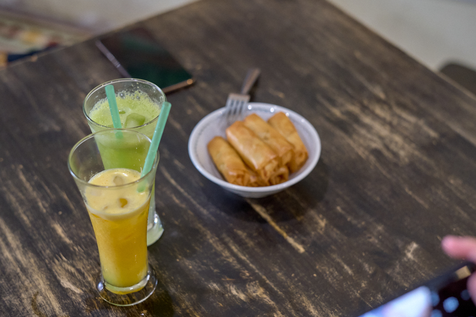 우선 주문한 음료와 스프링롤이 나왔다. 스프링롤은 익숙한 맛이었고 막 튀겨서 나와 따뜻하고 바삭했다. 아쌈 락사에 스프링롤을 찍어 먹어도 맛있다고 알려주셨다. 메인 음식 아쌈락사가 나왔다. 예상대로 뭔가 복잡한 모양이다. 맛은 시큼하면서 단맛도 났지만 비리지는 않았다. 등푸른생선의 맛이 생각보다 강하지 않았다. 나쁘지는 않지만 엄청난 맛이라고 느껴지지는 않는다. 내겐 익숙하지 않은 맛 인가 보다. 아내와 아이의 입맛에도 맞지 않은 모양이다. 몇 번 더 먹어봐야 참맛을 알 수 있다고 판단한 우리는, 기회가 되면 다른 곳에서라도 한 번 더 먹어보기로 했다.