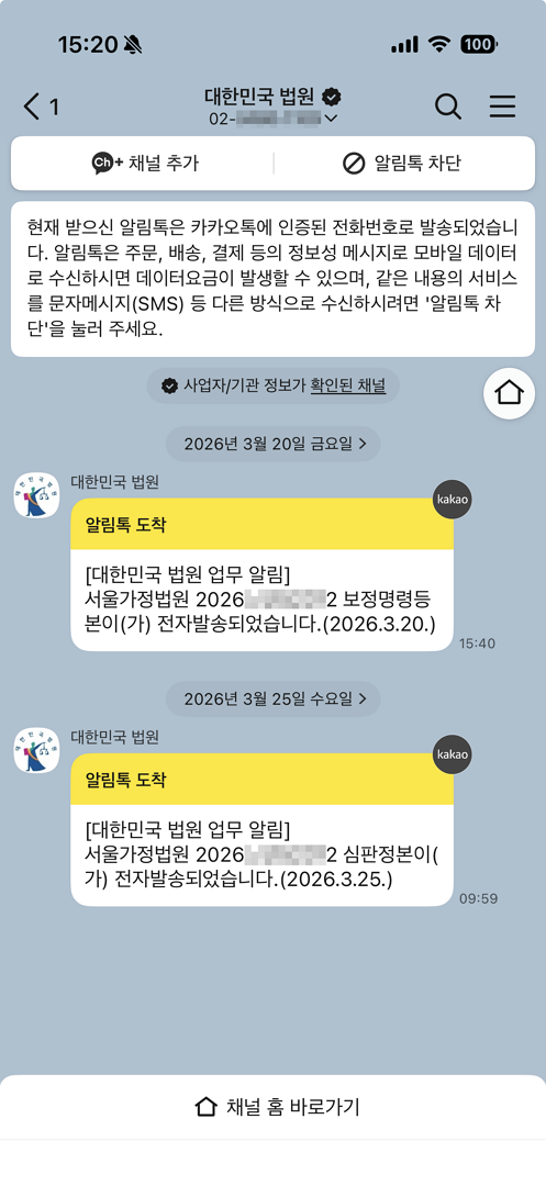 접수하고 2일 후 스마트폰의 카톡이 울렸다. 법원에서 온 카톡이다. 심판정본이 발송됐다는 내용이다. 심판정본이 뭐지?