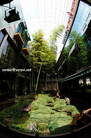 우리가 도착 삐~(특정상호)가든은 꽃밭과 건물 주위로 산책로를 만들어놓아 빨리 밥먹은 사람은 나와서 한바퀴 돌아봐도 될 듯. 건물 중간은 대나무를 싶어놓고 천장은 일관이 들어오도록 해 놓았다. 신경썼다.