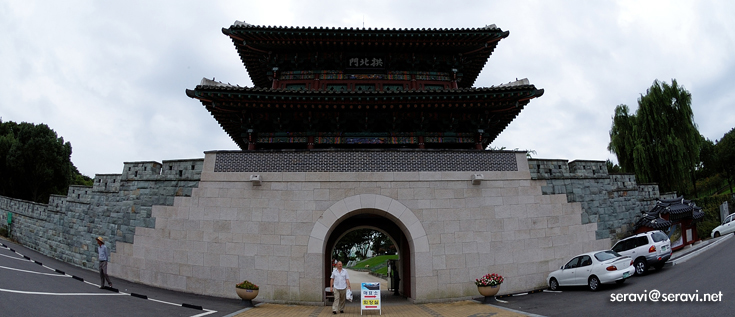 진주성 정문이다. 주차장이 성 바로 앞에 있어 들어가기는 쉬웠다. 성문 하면 좀 올라가서 언덕에 있을 것이라고 생각했던 나의 생각이 무참하게 밟히는 순간이다. 돌로 축조된 성인데 처음에는 토성이였다고 한다.
