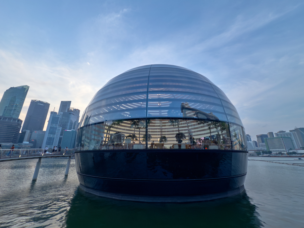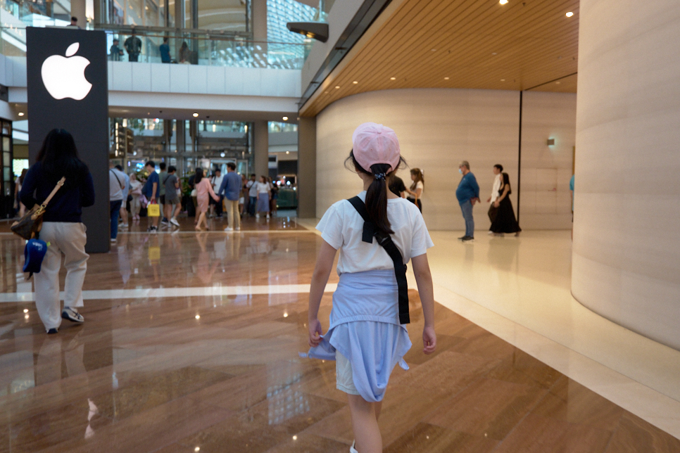 죽 늘어선 가게 훑어보다 Apple Store가 나왔다. 긴 복도로 된 매장을 지나, 에스컬레이터를 이용, 물 위로 올라갔다. 지하부터 수상 매장까지 멋진 Apple Store다. 우리는 한참을 이곳에서 보냈다. 딸아이는 진열된 iPhone으로 게임을, 아내와 나는 건물 밖으로 나가 경치 구경과 주변 사진을 찍었다.