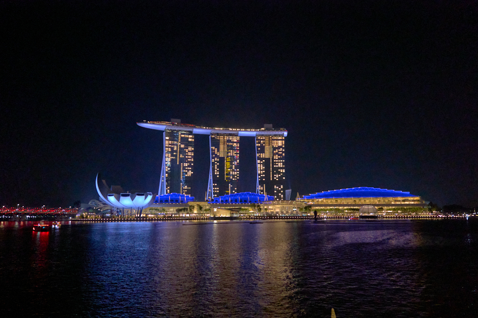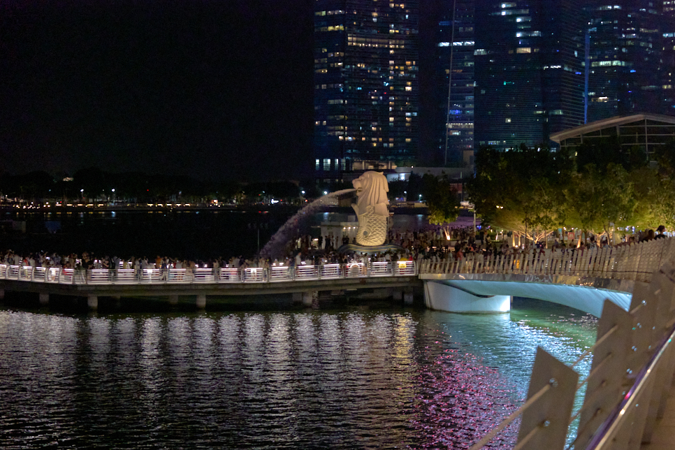 직접 가보니 애매한 크기의 상상 속 동물인데, 모습이 위압적이지도 귀엽지도 않다. 물은 왜 뿜고 있는지도 궁금하다. 하지만, 공원의 위치에서 바라본 풍경은 멋지다. 에스플러네이드 시어터스Esplanade Theatres, 싱가포르 플라이어Singapore Flyer, ArtScience Museum, 마리나 베이 샌즈 싱가포르Marina Bay Sands Singapore와 많은 고층빌딩의 조명발은 끝내준다!