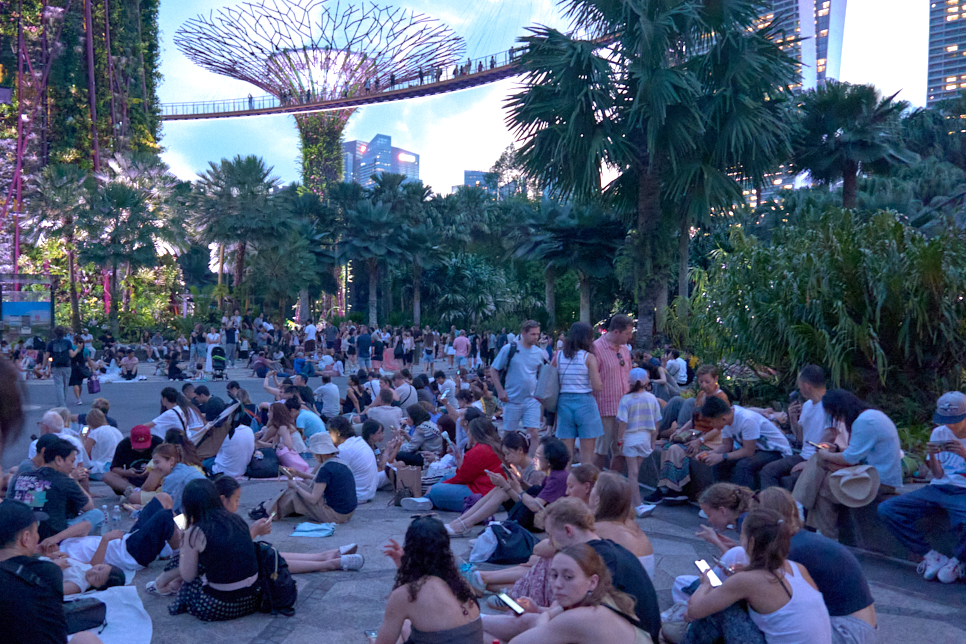 너무나도 더운 푸드코트에서 식사를 마치고, 슈퍼트리 그루브로 이동했다. MBS 호텔 건물을 나와 그 방향으로 서니 걸어가는 무리가 있었다. 누가 봐도 우리와 목적지가 같은 사람들이었다. 우리는 레밍스Lemmings 마냥 그들을 따라갔다.