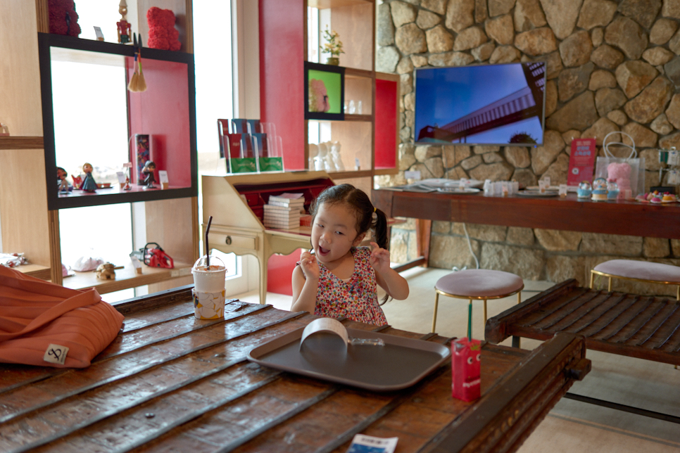 카페는 최옥영 작가가 여러 나라에서 수집한 가구와 설치미술작품을 이용해서 멋진 공간을 만드셨다. 각종 체험행사장으로도 사용하고 기념품 판매도 함께하는 공간이다.