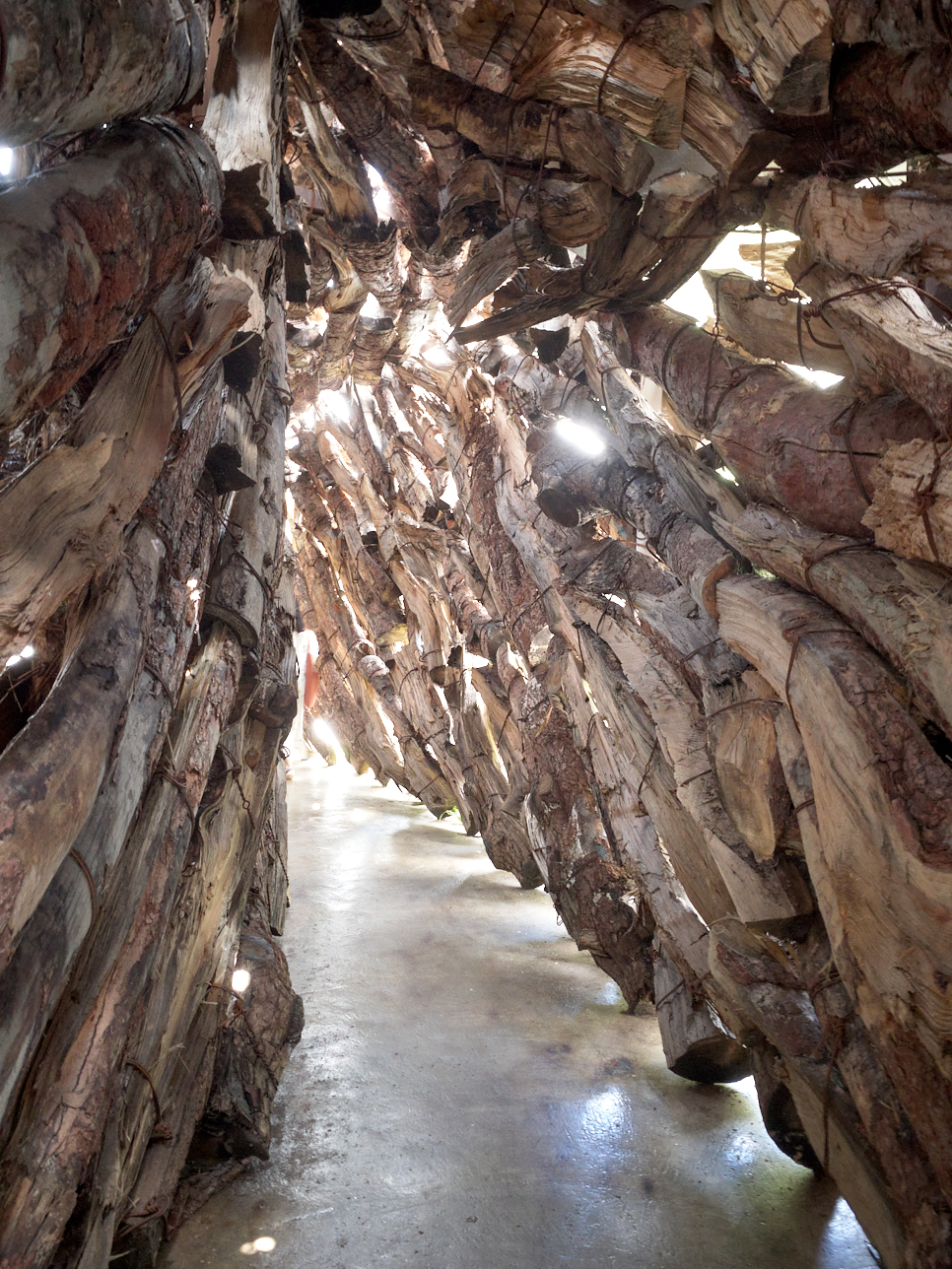 입장권을 발권하고 미술관으로 입장한다. 미술관은 여러건물로 구성돼 있는데 복도와 길을 쭉 따라서 관람하면 된다. 들어가니 먼저 보이는 것은 나무로 만들어진 동굴같은 복도를 지나 지나 간다. 이 복도 역시 설치 예술 작품이다.