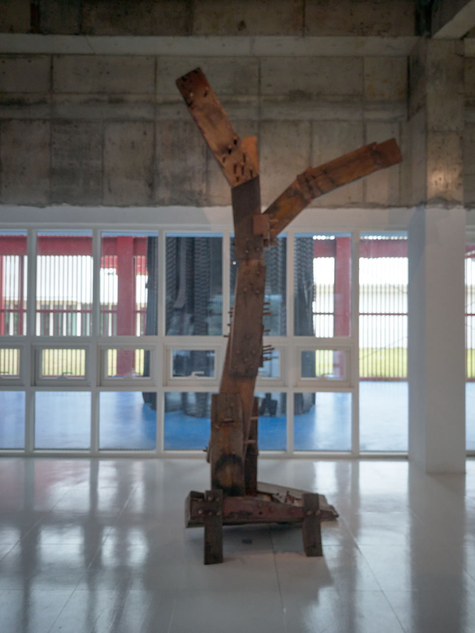 미술관은 독립된 건물과 파이프로 만든 파빌리온, 그리고 그사이의 길로 만들어져 있다. 하얀색 건물 사이 강렬한 붉은 색을 보다 이 녹색 길을 쉬엄쉬엄 거닐며 미술관을 넓은 눈으로 바라보는 시간을 가지게 된다. 하늘로 올라가려는 이무기도 보이고, 무리에서 뛰쳐나온 푸른 사슴 한 마리도 볼 수 있다. 저기 나무로 만든 곳은 아마 목성임에 틀림없다.