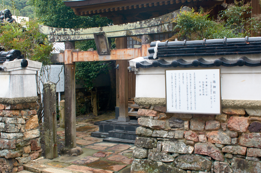 대마호텔 뒤쪽에 주차장이 있다. 주차장에서 오른쪽으로 난 골목으로 가면 바로 이케진자가 있다. 아주 조그만 곳으로 입구를 보면 신사임을 알 수 있다. 한문과 일어로 된 안내판을 보고는 어떤 곳인지를 알 수 없었다.