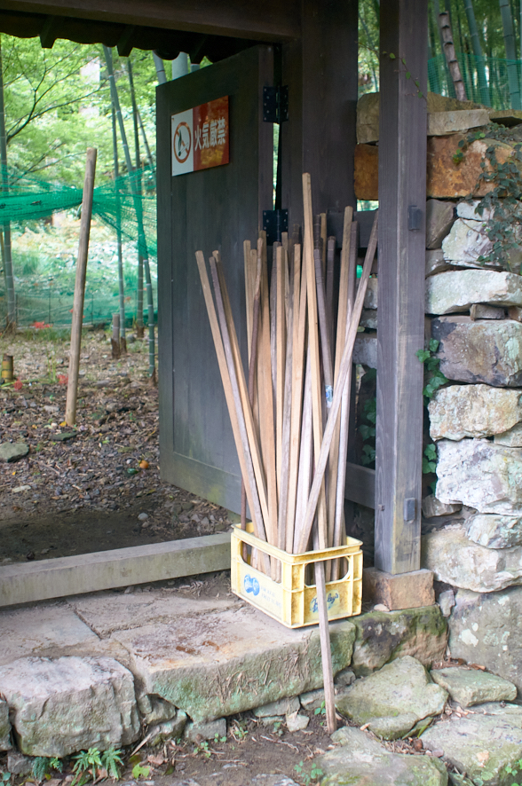 역대 도주들의묘지로 올라가는 돌계단 입구에 있는 지팡이. 참 친절도 하지...