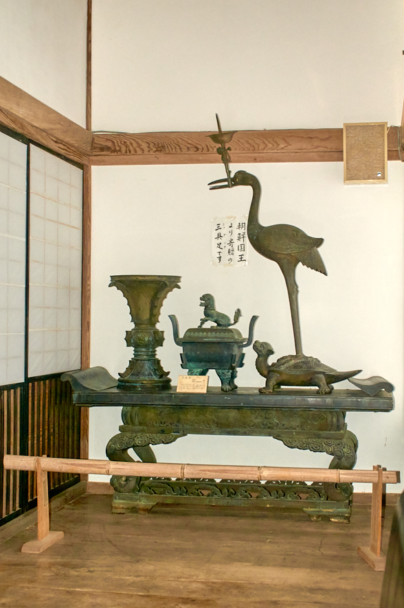 조선국왕으로부터 받았다는 동으로 만든 향로, 화병, 촛대