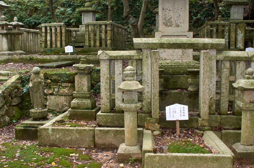 묘지는 상단, 중단, 하단으로 나뉘고 상단은 역대 도주와 정부인의 묘석이, 중단에는 첩과 아동, 하단에는 일족과 소오가에서 출가한 사람의 묘석이 있다고 한다.