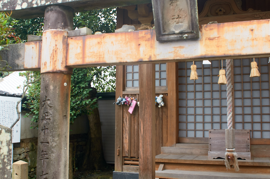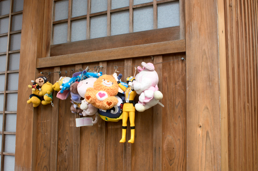 골목에 있는 너무 작은 신사이지만 관광지도에 표시한 것을 보니 의미 있는 신사인 듯하다. 다른 신사와 달리 많은 인형이 걸려있다. 위 사진에는 없지만 플래쉬맨 인형도 있었다.