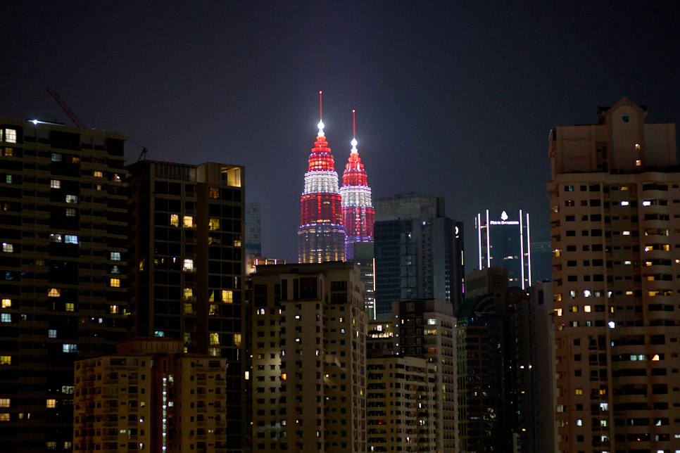 우리 가족은 쿠알라룸푸르에서 4일 밤낮을 보냈는데, 쿠알라룸푸르 타워Kuala Lumpur Tower와 페트로나스 트윈 타워의 끝부분은 매일 봤다. 묵었던 숙소가 근처여서 창밖으로 계속 볼 수 있었다. 도착한 첫날, 7월 20일 토요일 저녁의 페트로나스 트윈 타워의 색은 붉은빛이 었다. 하지만 이날을 제외하고는 매일 하얀색 불빛의 타워를 봤다. 그날은 무슨 이유에서 붉은빛으로 빛났을까?