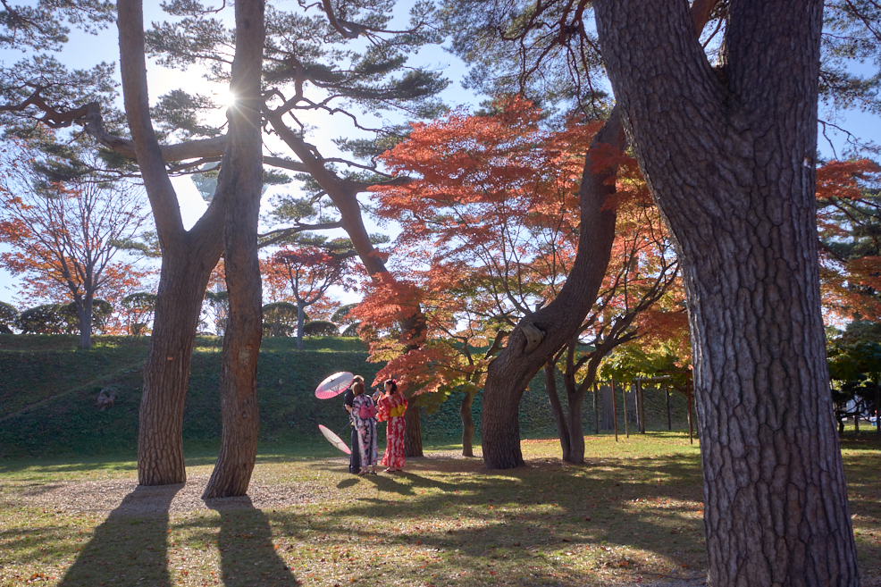고료카쿠는 난공불락難攻不落이라 불렸지만 역설적으로 내전만 몇 번 있었고 외세의 침입은 한 번도 없었다고 합니다. 10월 말 북해도 지방의 단풍놀이 직전 시기여서 가을 풍경을 만끽할 수 있었습니다. 기모노를 빌려 입고 사진 찍는 외국인들도 많이 보였으며, 예전에 설치했던 대포도 전시되어 있었습니다. 구름 한 점 없는 맑고 나른한 오후, 벤치에서 쉬었다 쉬엄쉬엄 한 바퀴 돌아보니 이렇게 크고 멋진 곳이 무료로 운영된다는 점에 감탄했습니다.