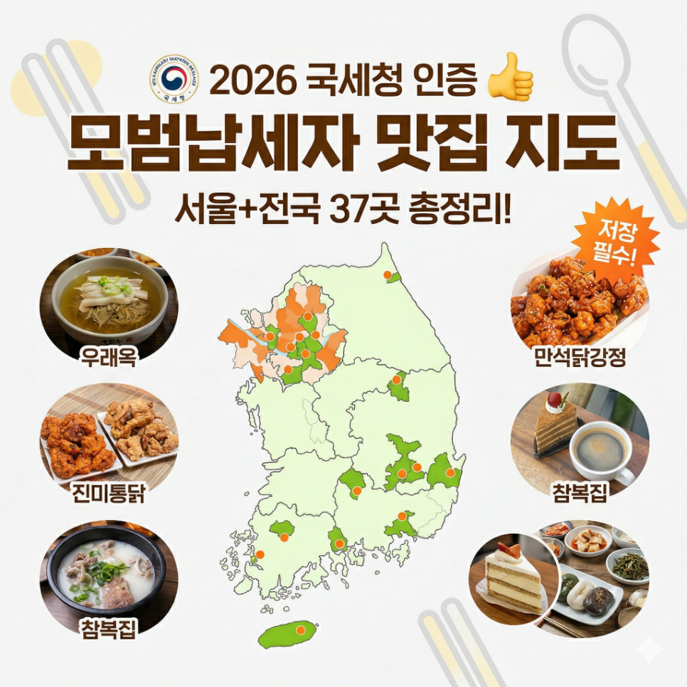 2026 국세청 인증 모범납세자 맛집 지도. 서울·전국 37곳 한눈에 보기