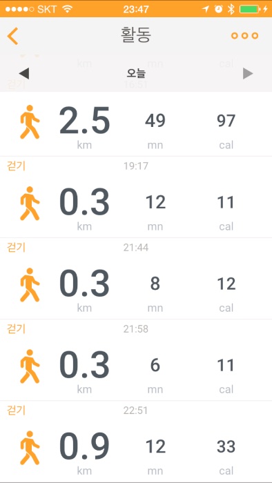 뛰는 걸 자동으로 감지하여 거리까지 계산한단다. 음... 날 아는 사람들은 알겠지만 난 뛰지 않는다. 양반은 뛰지 않는다! 딱히 나에게는 데이터가 쌓일 것 같지 않다.