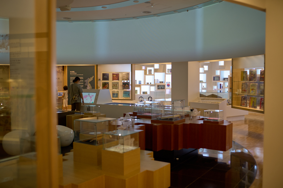 아리랑 센터의 한쪽에 있는 아리랑 박물관은 두 개의 층으로 구성돼 있다. 1층에 들어서면 많은 양의 스탬프가 놓여있다. 보통 해당 위치를 알려주는 스탬프만 있는 다른 관광지와는 달리 위치 스탬프 외에 많은 문구로 이루어진 스탬프가 준비돼 있다. 스탬프가 놓인 테이블 옆으로는 각종 기념품을 판매하고 있다. 기념품 판매처에 흔히 있는 노트, 필기구, 수건과 우산이 있는데 마스킹 테이프와 오르골이 색달라 보인다. 이미 사 놓은 다꾸(다이어리 꾸미기)용 마스킹 테이프가 많이 있어서 가볍게 지나갔다.
