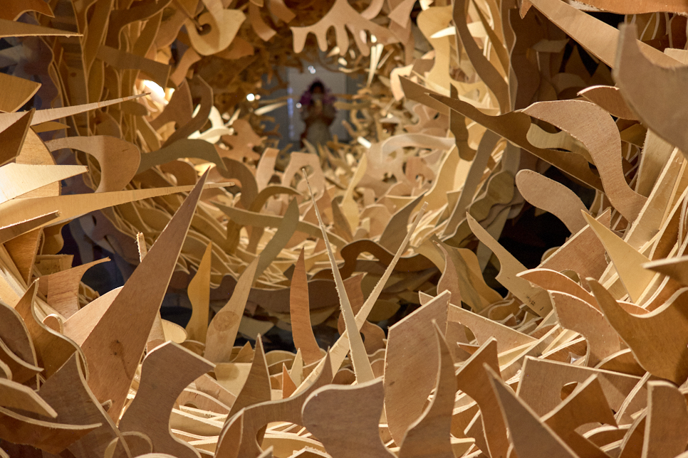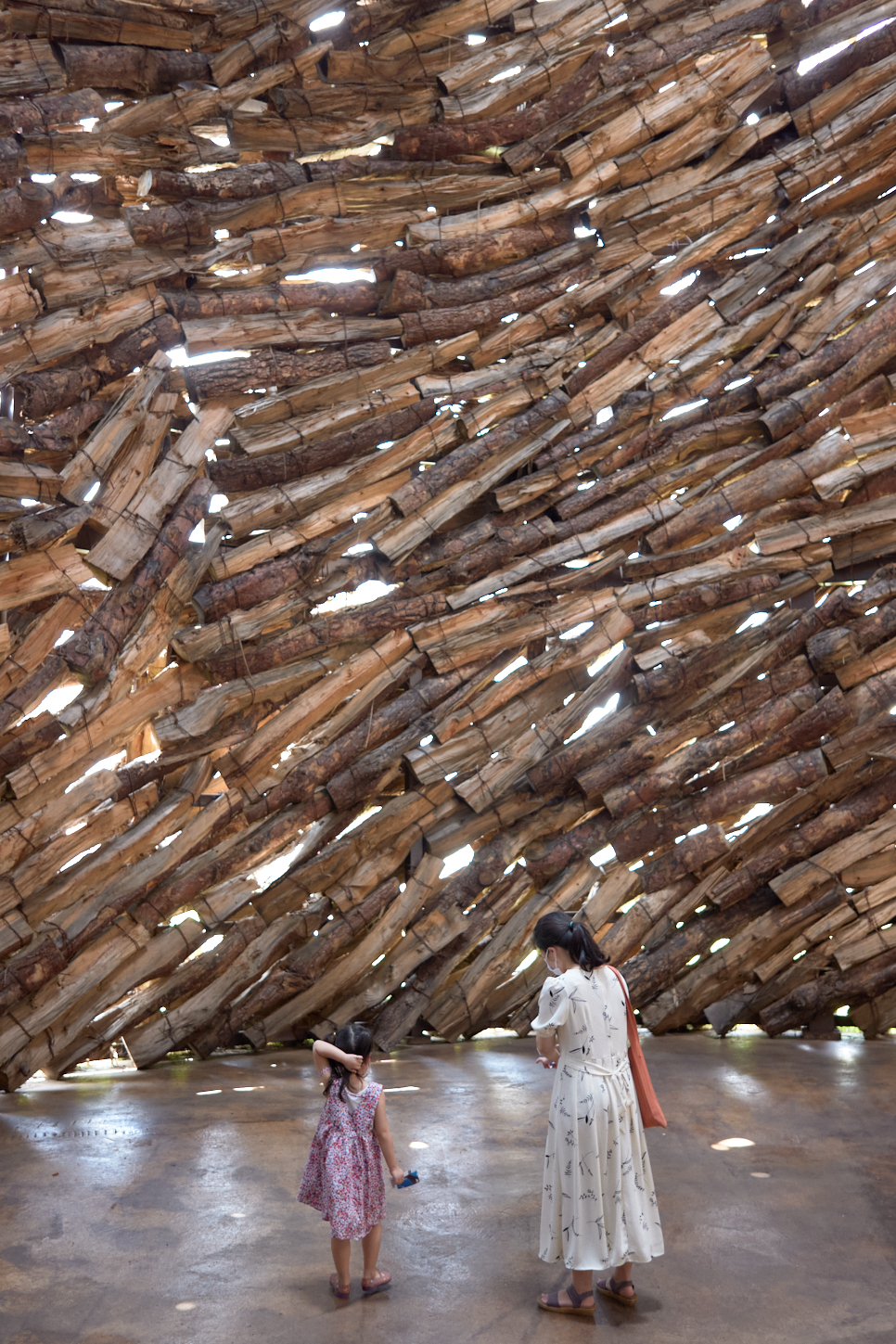 입장권을 발권하고 미술관으로 입장한다. 미술관은 여러건물로 구성돼 있는데 복도와 길을 쭉 따라서 관람하면 된다. 들어가니 먼저 보이는 것은 나무로 만들어진 동굴같은 복도를 지나 지나 간다. 이 복도 역시 설치 예술 작품이다.