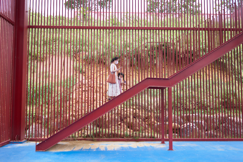 젊은달 미술관 1을 나오면 바로 '붉은 파빌리온 I'이 나온다. 이 안에도 여러 작품(공간)이 있다. 이 야외 이동 공간도 하나의 작품이다. 아마 붉은 파빌리온 I과 II의 통로를 '바람의 길'이라는 작품으로 이야기하는 것 같다.