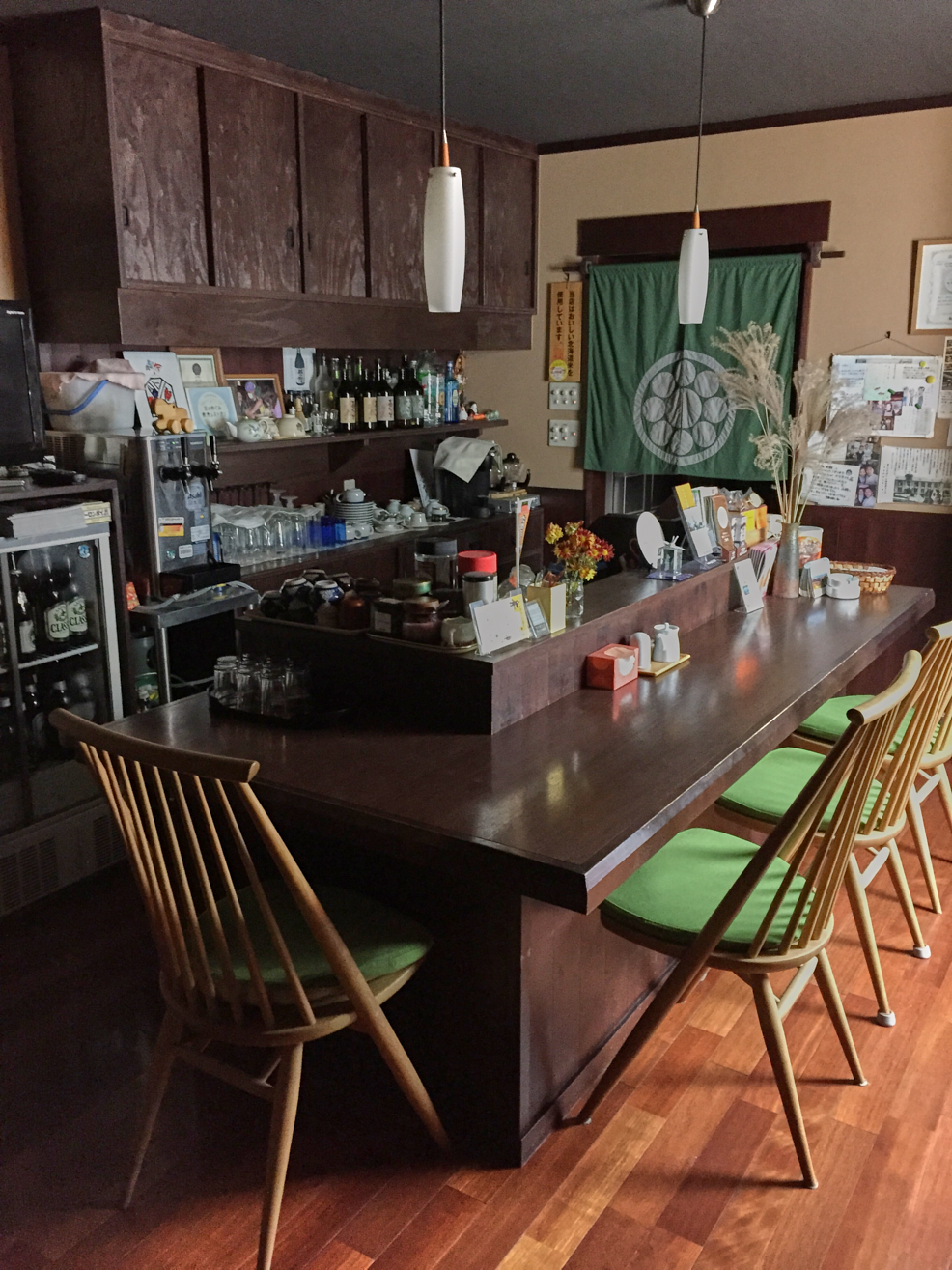 헨미료칸에 들어서면 크지도 작지도 않은 식당이 있으며, 고풍스러운 의자와 식탁이 놓여 있고 안쪽 바bar 자리는 카운터로도 사용됩니다. 이곳에서 체크인과 체크아웃을 진행합니다. 사장님으로 보이는 아주머니께서 반갑게 맞아주시며 짧은 영어 단어와 몸짓, 번역기를 이용하여 객실, 화장실, 욕실 등을 안내하며 주의사항을 친절히 알려주셨습니다.